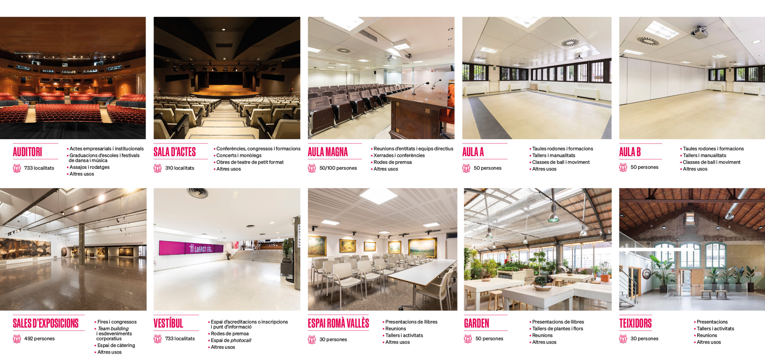 Els nostres espais són polivalents i al gust de tots els públics gràcies a unes instal·lacions confortables i unes característiques versàtils que s’adapten a totes les necessitats.